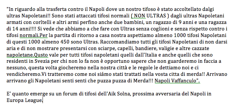 RIPETO: NON CHIEDIAMOCI OGNI VOLTA "CHI HA FATTO LA CAZZATA", CHIEDIAMOCI COME MAI OGNI PARTITA CI SONO CAZZATE, COME MAI OGNI CAZZATA E' UN GOL DEGLI ALTRI, COME MAI NESSUNA CAZZATA VIENE MAI RIMEDIATA. ECCO PERCHE' LA COLPA E' DEL MANICO, NON DI CHI FA LE CAZZATE. LA COSA INCREDIBILE, VERAMENTE CLAMOROSA, E' CHE A NESSUNO VIENE NEANCHE IN MENTE DI PARLARE DI ESONERO. BALDINI E' FUORI DI TESTA, SONO BASITO. RIVOLUZIONE, CULTURA, SPIRITO....MA CHE CAZZO STAI A DI'????? E LO DICO DI UN UOMO CHE AMAVO QUASI DA FROCIO! DIO TROIONA!